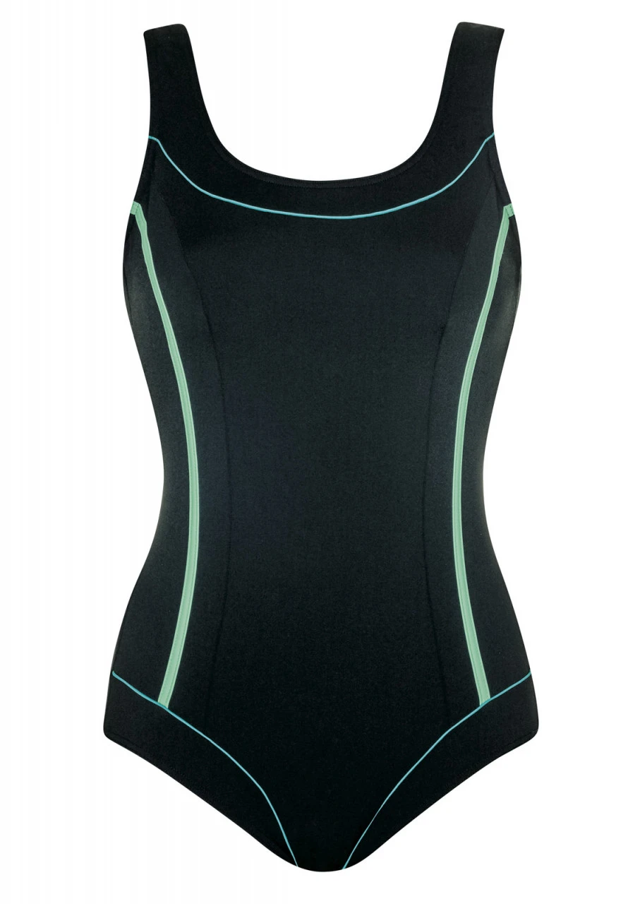 Optimaler Tragekomfort! Mastectomy-Badeanzug mit Softschalen, Halbcorsage und tiefem Rückenausschnitt. Das höher geschlossene Dekolleté sorgt für einen sicheren Sitz und der Brustansatz bleibt unsichtbar. Beidseitige Taschen ermöglichen das Einschieben der Prothesen und schützen sie vor Herausfallen. Der Einteiler ist zudem aus einem speziellen chlorresistenten Material gearbeitet, das selbst hoher Beanspruchung trotzt und der Trägerin lange Freude bereitet.