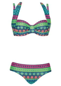 Explosive Farbigkeit, bei der feurige Rottöne und leuchtende Aqua-Farben in einer unglaublichen Komposition miteinander harmonieren. Ein atemberaubender Hingucker für die Badesaison! Bikini mit Formbügeln, Softschalen, verstellbaren Trägern zum Aushaken. Sehr schönes Bikini-Top im Balconette-Stil.
